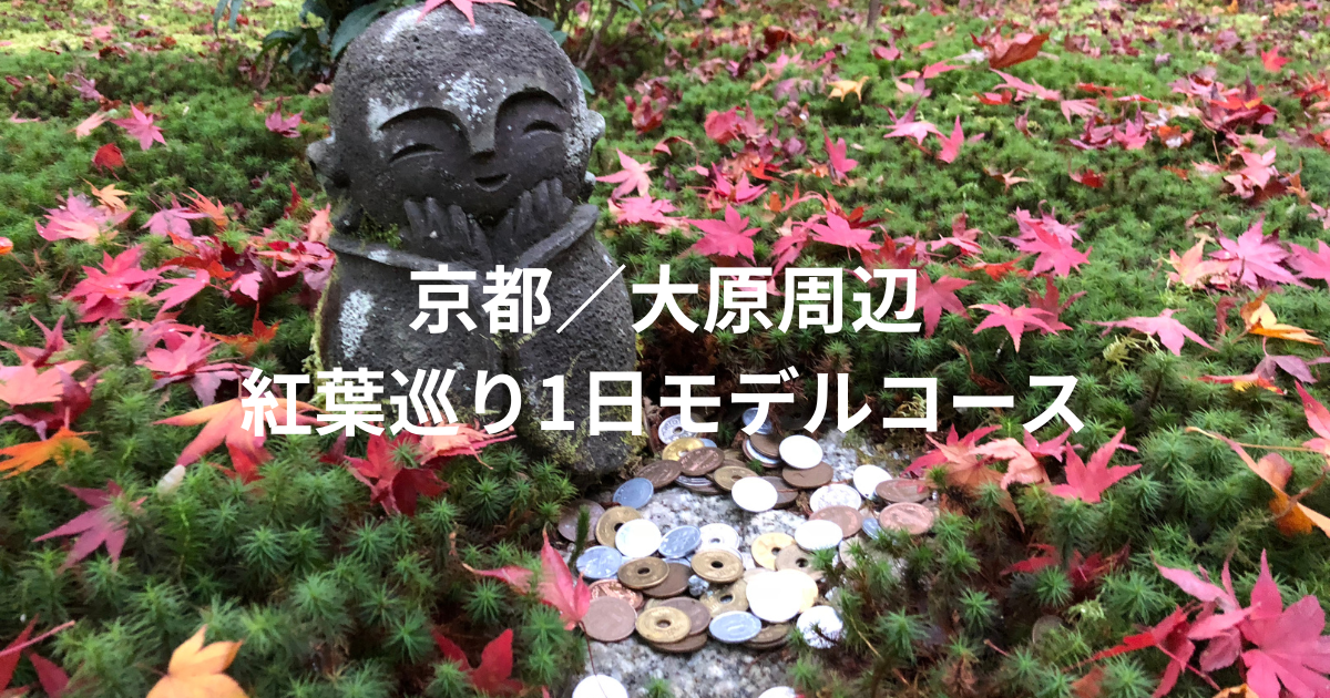 大原周辺は大原三千院や寂光院等の紅葉名所がありますが、広い範囲に点在しているため、車での観光が必須。車での観光であれば、1日で主要スポット観光することができます。