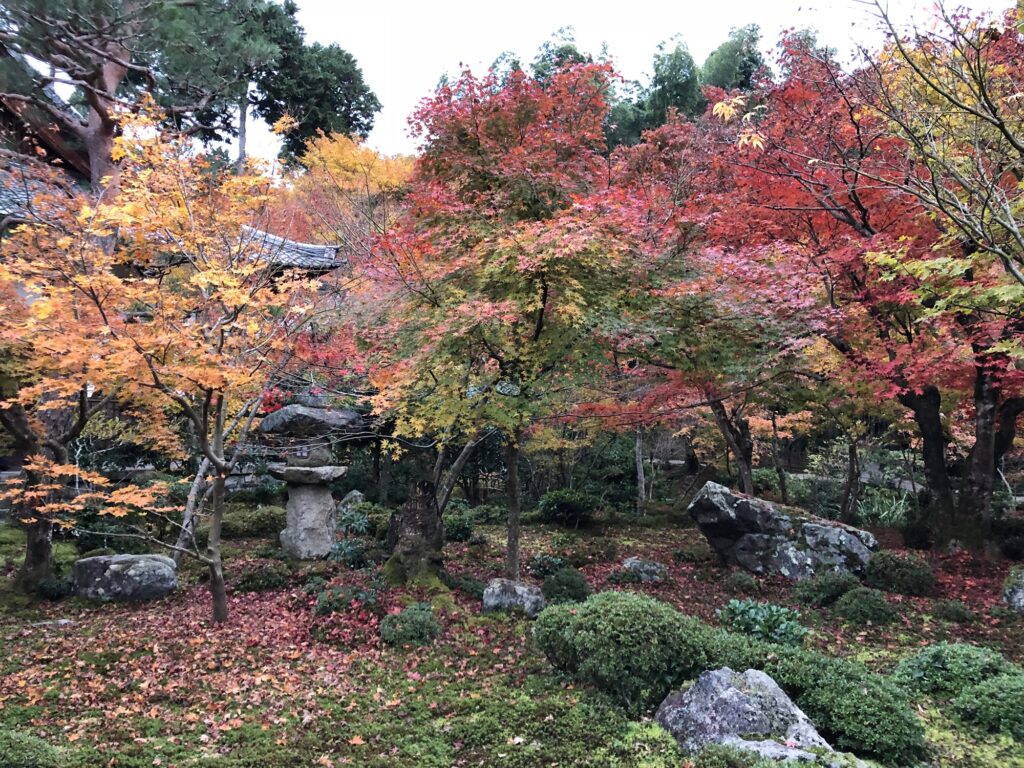 ・修学院エリアの紅葉名所として知られ、枯山水との調和が見どころ